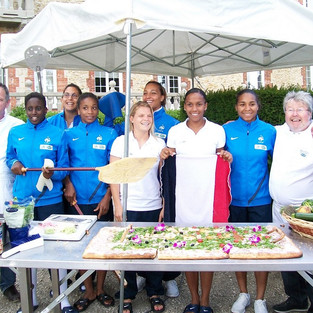 C’est au centre technique national de Clairefontaine que l’équipe de France de football féminin a pris ses quartiers ce mercredi, pour préparer les J.O de Londres. Alors que les Bleues s'apprêtent à négocier six matches au mois de juillet, celles-ci ont été ménagées en cette dernière journée de juin, conclue par un atelier pizza, dirigé par le champion du monde, Thierry Graffagnino. S'essayant d'abord au tour de main nécessaire à la mise en forme, avant de profiter du temps estival pour un repas en plein air et fêter dans les rires le 27ème anniversaire de Julie Soyer.